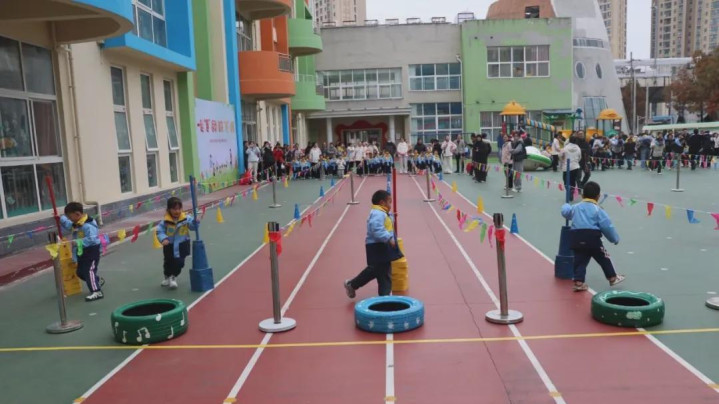 信阳市浉河区幼儿园宝贝们把“星球”放进“太空小车”,绕着“S形陨石带”运送,每次稳稳护送“星球”安全送到下一个小伙伴手里,都会露出灿烂的笑容。