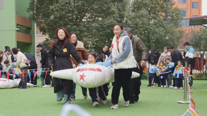 为了让幼儿亲身感受航天的神秘和魅力,增强幼儿的民族自豪感,培养爱国情怀,同时增进亲子感情,培养幼儿合作意识。信阳市浉河区幼儿园于2025年12月4日开展了“童趣闯太空,共赴航天约”为主题的中班组亲子趣味运动会,家园携手,一起陪伴孩子探索浩瀚宇宙,开启孩子们的航天梦之旅。